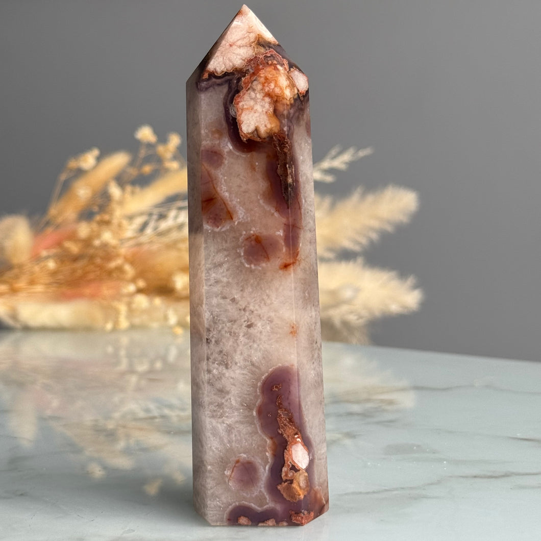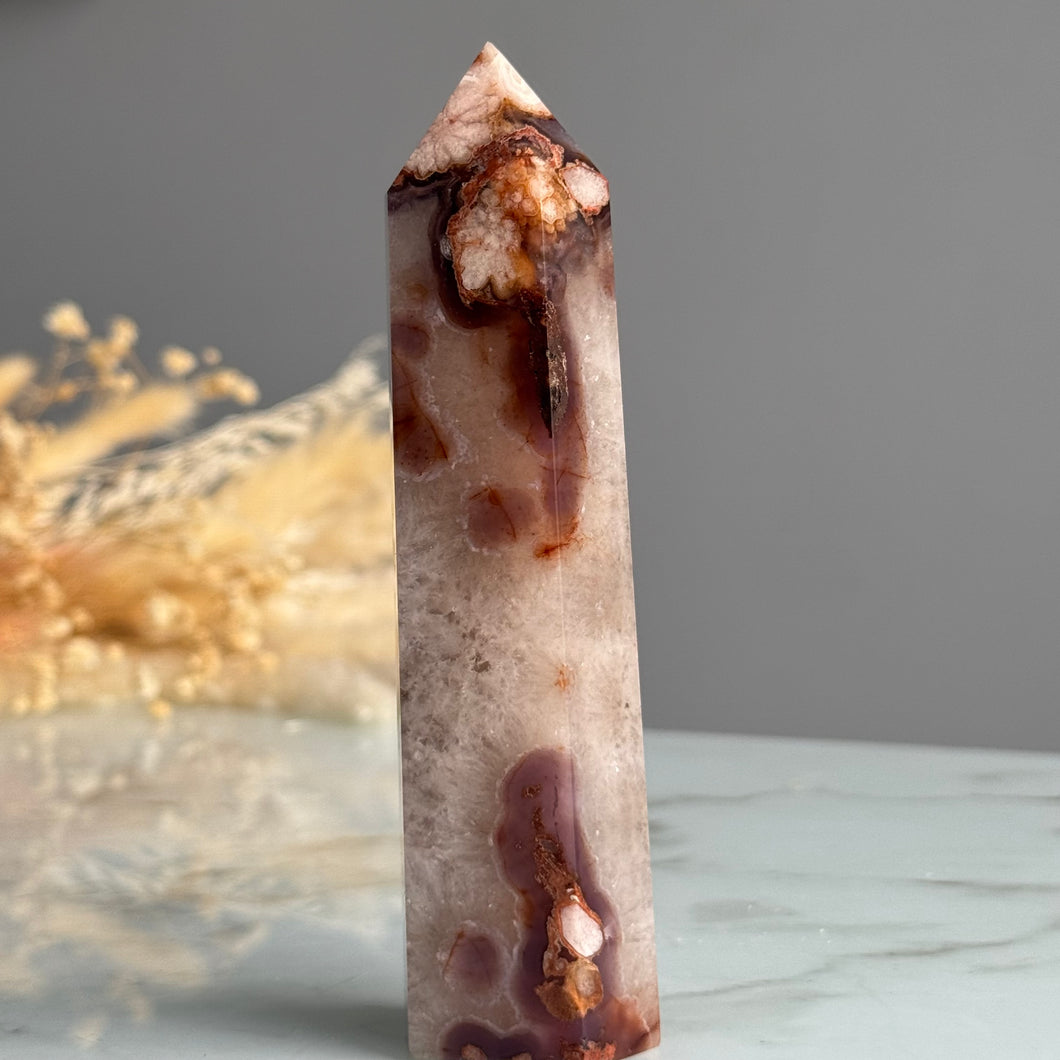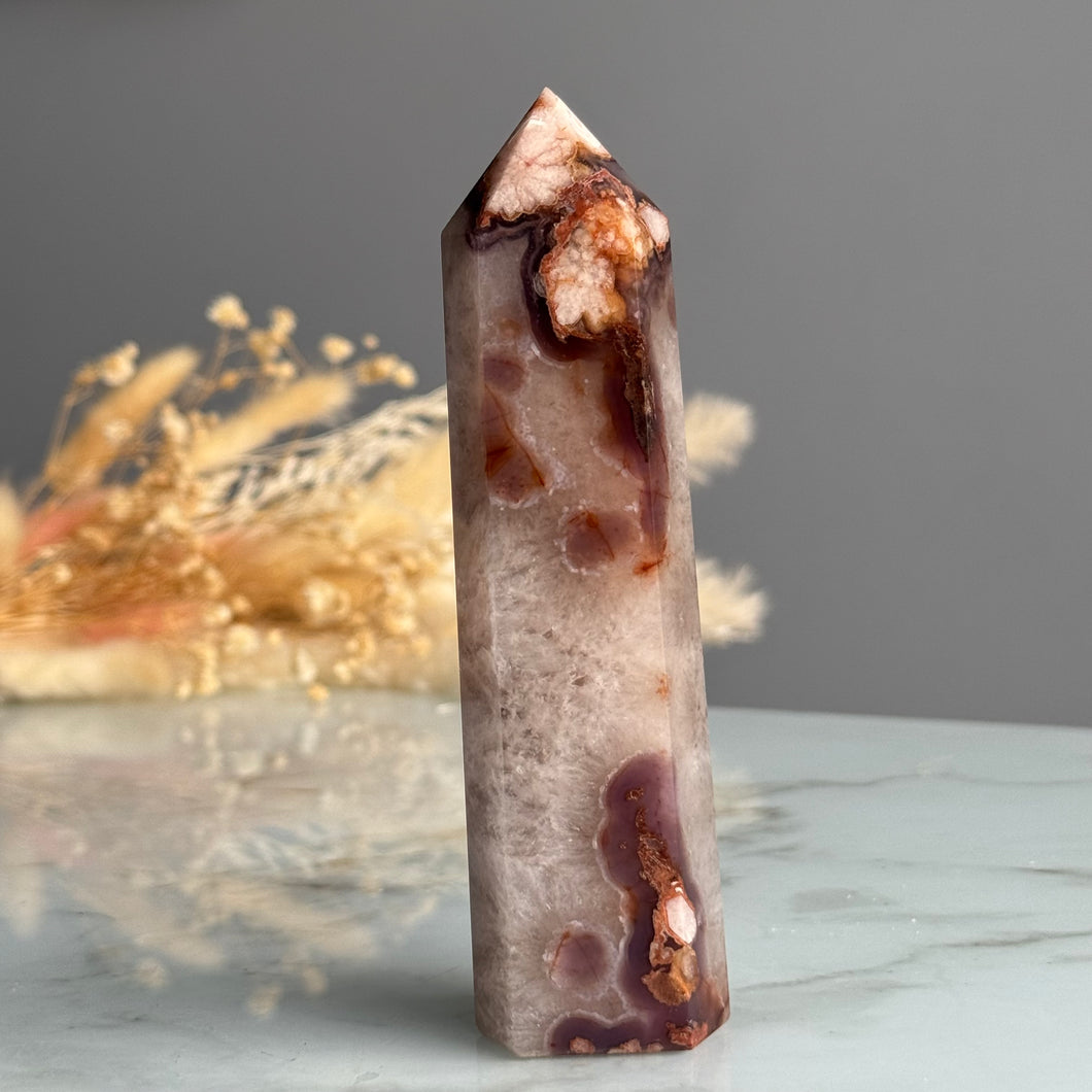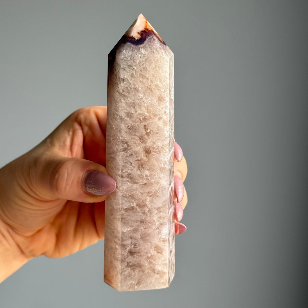 Blue Flower Agate with Quartz Tower Specimen