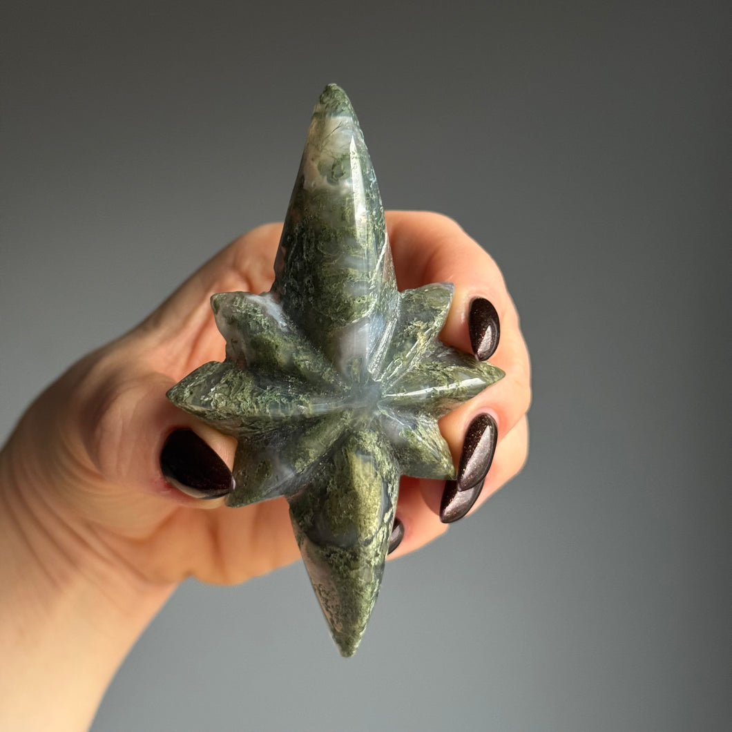 Moss Agate Star Carving Crystal Specimen (with Stand)