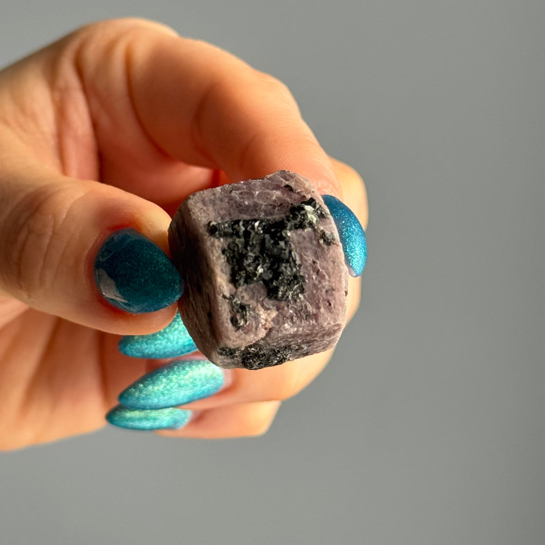 This particular form is naturally shaped in its six-sided sacred geometry, carrying a stable, balanced vibration that anchors harmony and strength into your energy field. The hexagon is a symbol of universal connection and divine order, amplifying Ruby’s natural life force and protective energy.