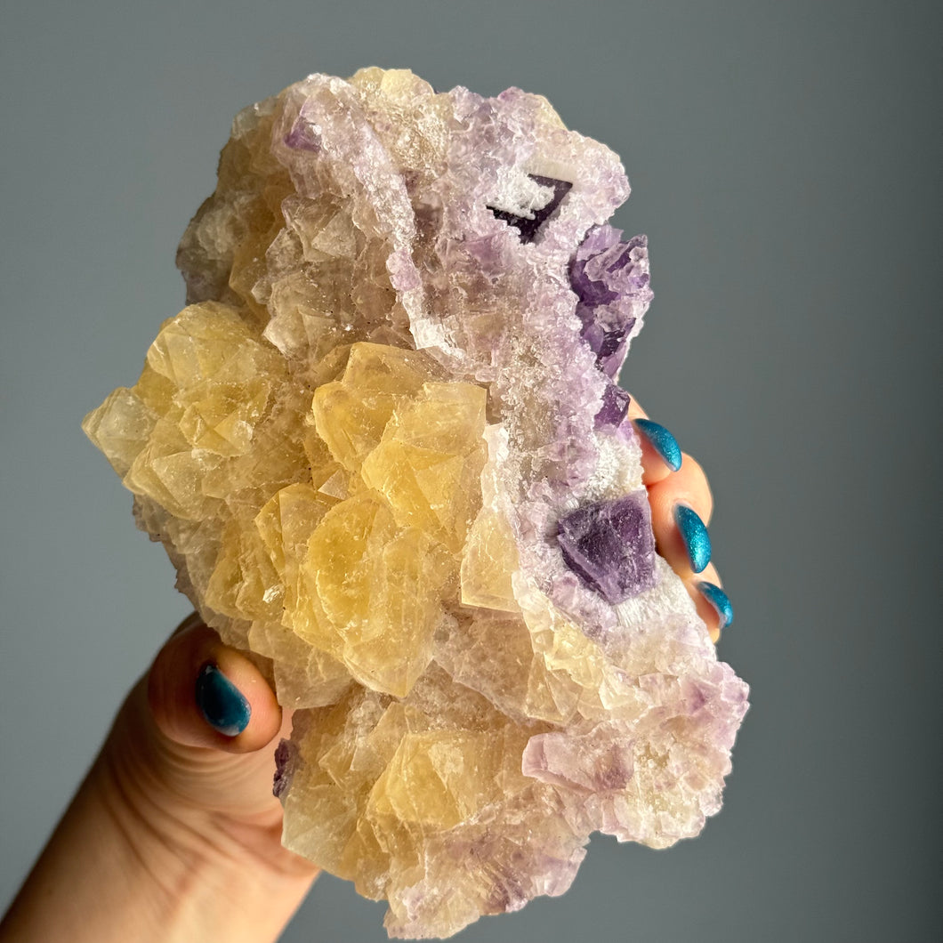 Yellow and Purple Fluorite Raw Crystal Specimen